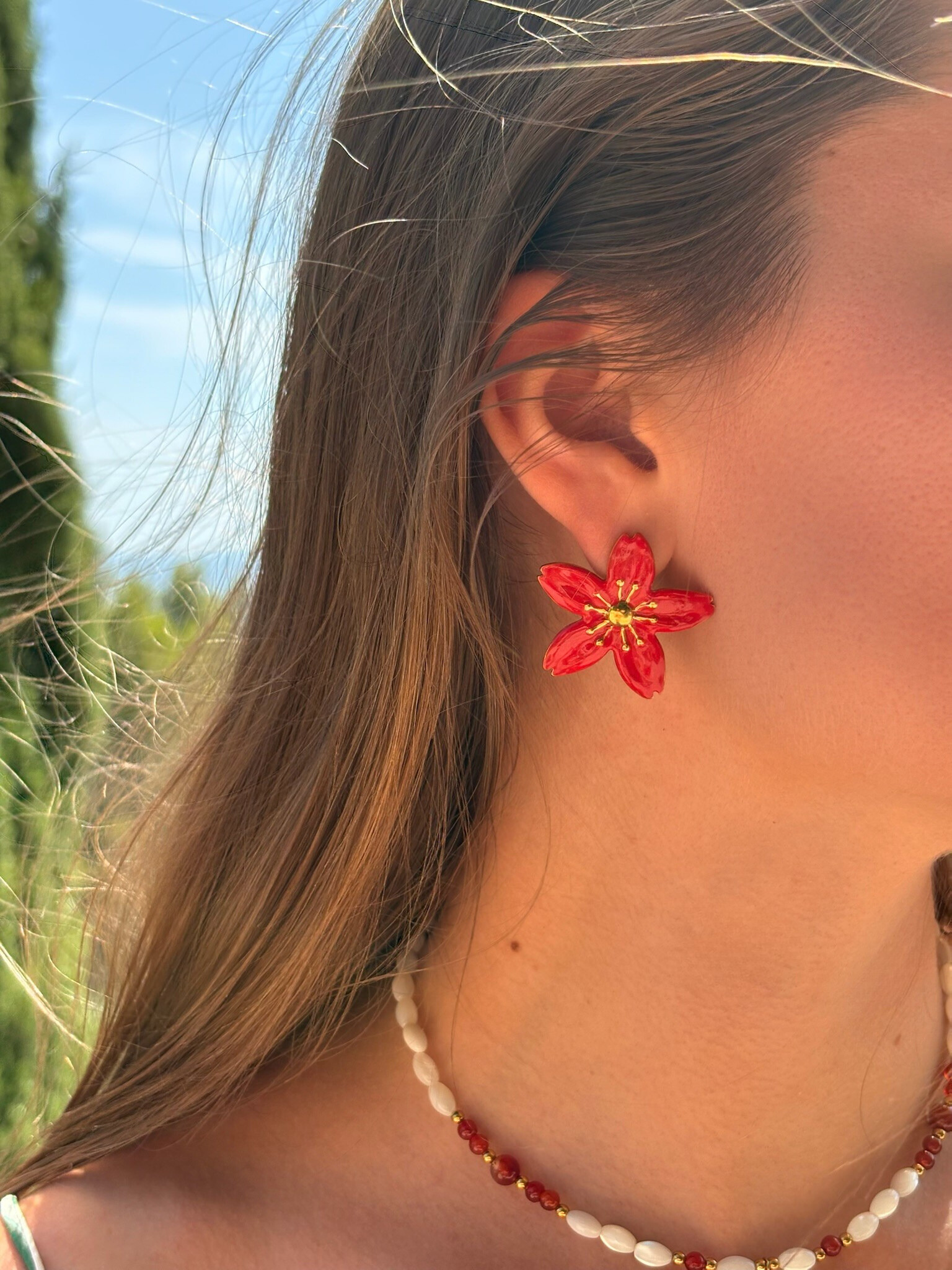Boucles d'oreilles en forme de fleur, en acier inoxydable et résine.
