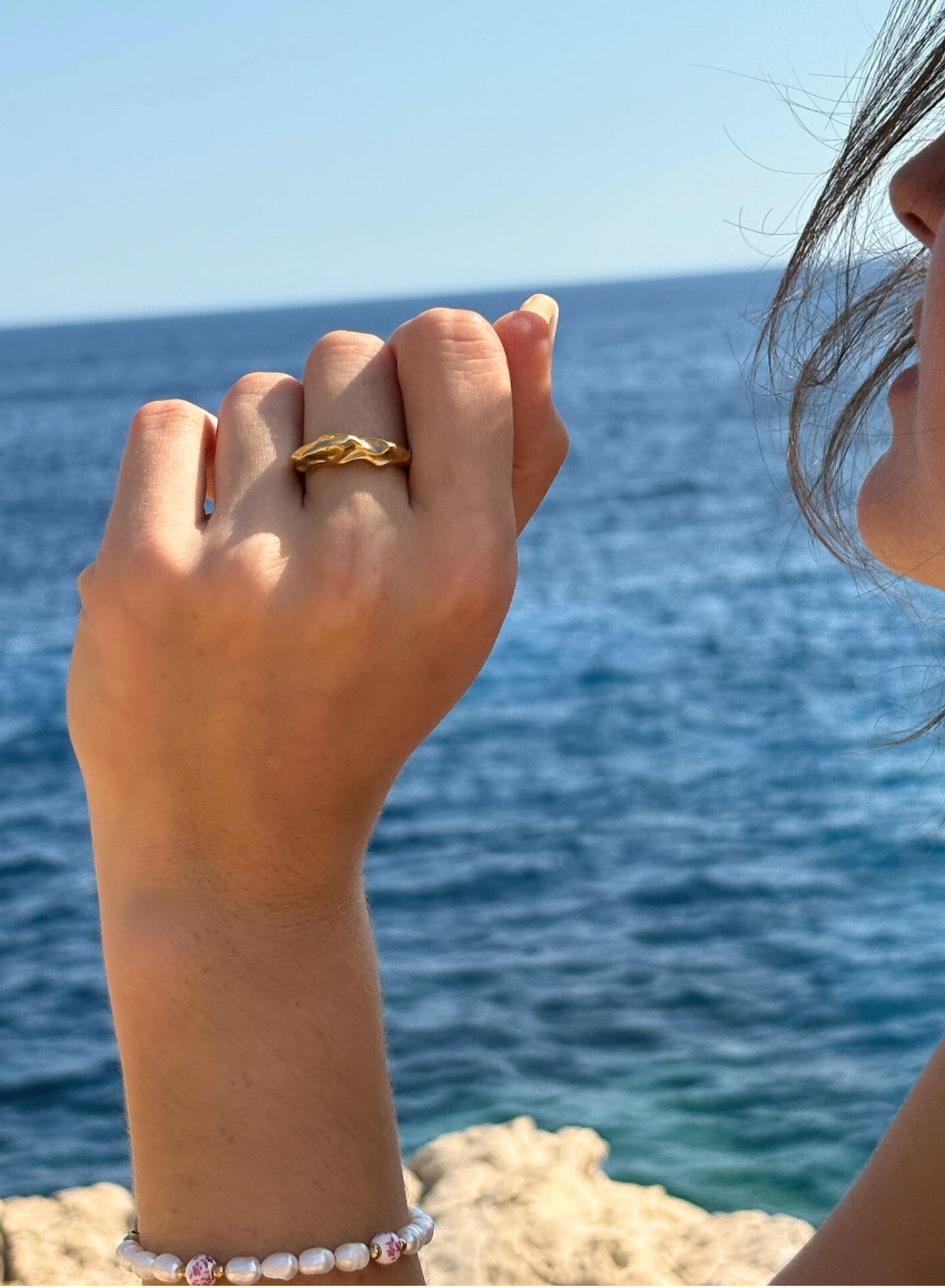 Bague drapée en acier inoxydable, taille 54